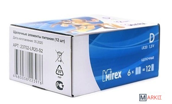 Markit » Батарейки, аккумуляторы, зарядные » Батарейка Mirex LR20 D Алкалайн 2 шт 23702-LR20-S2