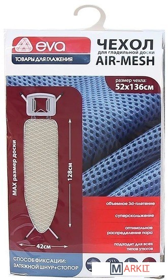 Чехол для гладильной доски EVA Air-mesh выполнен из материала, не имеющего аналогов на рынке. Ячеистая структура обеспечивает оптимальное распределение температуры и пара, хорошее скольжение. Подходит для всех типов утюгов. Эти качества материала позволяют достичь профессионального результата при глажении и отпаривании одежды.