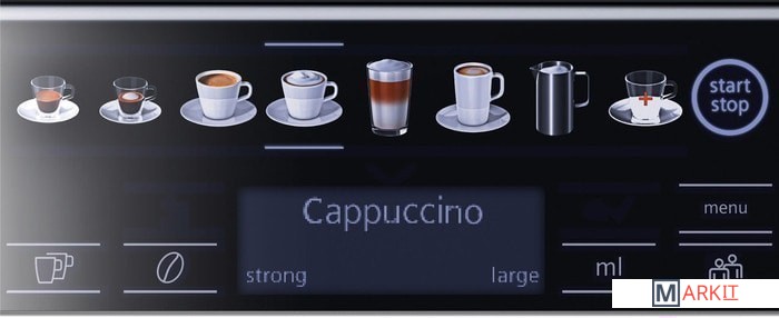 Программы приготовления эспрессо, лунго, капучино, латте макиато, эспрессо макиато, горячее молоко