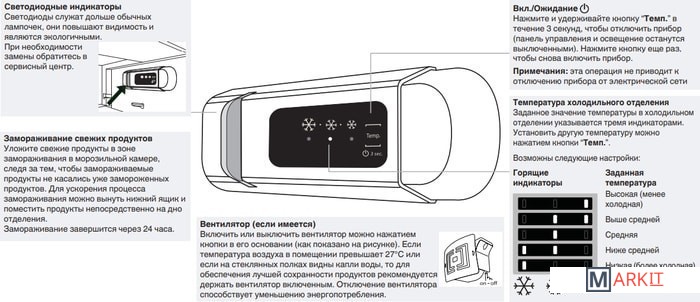 | Регулировка влажности в ящике для овощей и фруктов |