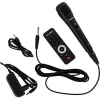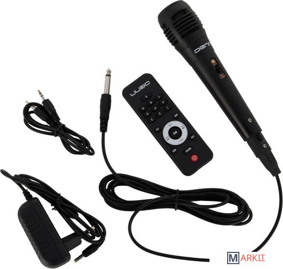 Комплектация - пульт ДУ- один проводной микрофон- адаптер питания- AUX кабель- документация
