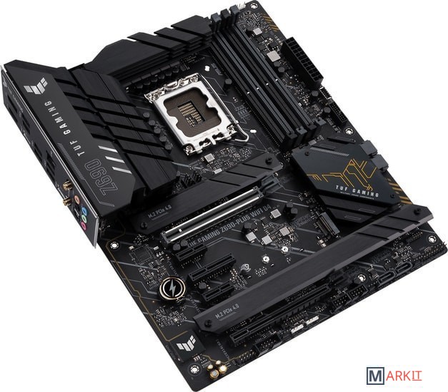 Разъем LGA 1700: поддержка процессоров Intel Core 12-го поколенияОптимизированная система питания: 15 силовых модулей DrMOS (14+1), шестислойная печатная плата, разъемы ProCool, высококачественная элементная базаСовременные интерфейсы: PCIe 5.0, USB 3.2 Gen2x2 Type-C, фронтальный USB 3.2 Gen2 Type-C и поддержка Thunderbolt 4Отличное решение для онлайн-игр: Wi-Fi 6, 2.5G Ethernet (контроллер Intel), защита сетевого разъема (TUF LANGuard)Двухстороннее интеллектуальное шумоподавление: фильтрация фоновых звуков как в исходящем, так и во входящем аудиопотокеПолноценное охлаждение: большой радиатор системы питания, чипсетный радиатор, радиаторы M.2, гибридные разъемы для вентиляторов и утилита Fan Xpert 4 (в приложении Armoury Crate)Полноцветная подсветка Aura: встроенная иллюминация и разъемы для подключения внешней подсветкиДанная материнская плата оснащается беспроводным адаптером Intel, который соответствует стандарту Wi-Fi 6 (802.11ax) и обладает максимальной теоретической скоростью передачи данных на уровне 2,4 Гбит/с. Он оптимизирован под эффективную работу в условиях загруженных сетей, когда множество клиентских устройств делят между собой общую пропускную способность канала. Для раскрытия всех возможностей нового стандарта Wi-Fi 6 рекомендуем применять совместимый маршрутизатор ASUS. В основании входящей в комплект поставки антенны имеется сильный магнит, с помощью которого ее можно закрепить на верхней или боковой панели компьютерного корпуса.