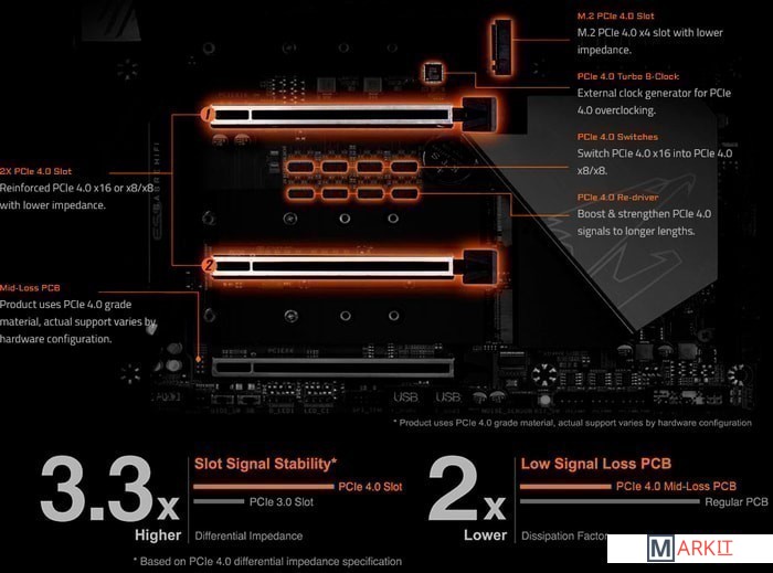 Режимы работы нескольких PCIe x16 слотов x16/x0/x0, x8/x8/x0, x8/x8/x4; 2 x16 с поддержкой PCIe 4.0