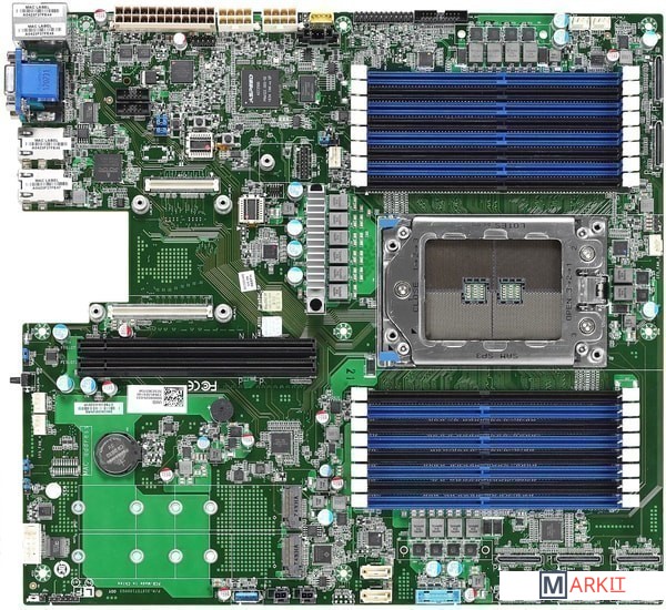 На задней панели располагается RJ-45, который является выделенным портом управления.Плата оснащена двумя слотами PCI Express x24, которые служат для установки высокоскоростных дисковых и сетевых контроллеров посредством соответствующей райзер-карты.