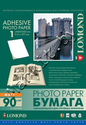 Самоклеющаяся фотобумага LOMOND (2210003) A4 90 г/м2 матовая, 1 дел, 25 листов Код: 3574
