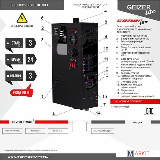 Markit » Отопительные котлы » Отопительный котел Термокрафт Geizer Lite 12