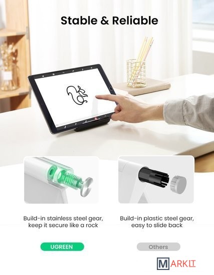 Эта мини настольная подставка для планшетов обеспечивает надежное и безопасное крепление для ваших смартфонов и планшетов. Умный выбор для размещения мобильного устройства в вертикальном или горизонтальном положении, давая вашим рукам передышку, когда вы наслаждаетесь видео, чтением или просмотром видео. В диапазоне от 15° до 100° вы можете настроиться на желаемый угол и смотреть видео в более удобном положении.