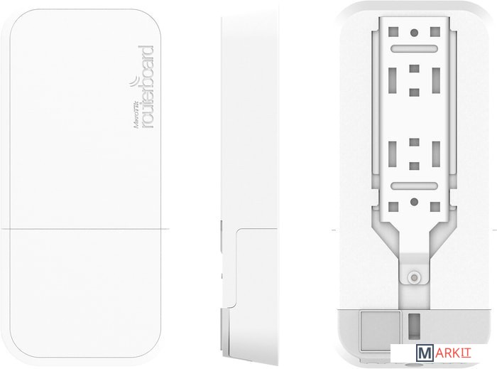 wAP 60G - беспроводное устройство MikroTik, выполненное в компактном погодоустойчивом корпусе MikroTik wAP. Может использоваться как клиентское устройство, либо как компонент соединения "точка-точка" (PtP). Работает в частотном диапазоне 58320–64800 МГц с использованием новейшего стандарта беспроводной связи 802.11ad, оснащено мощным 4-х ядерным процессором IPQ-4019 с частотой 716 МГц, Ethernet-портом 1 Гбит, имеющим поддержку получения питания посредством PoE стандартов 802.3af/at (PoE+) 11—57 В; работает под управлением операционной системы RouterOS Level 3.